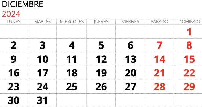 CALENDARIO FISCAL DICIEMBRE de 2024