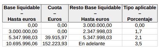 La cuota íntegra es el importe resultante de la aplicación a la Base liquidable de la siguiente escala: