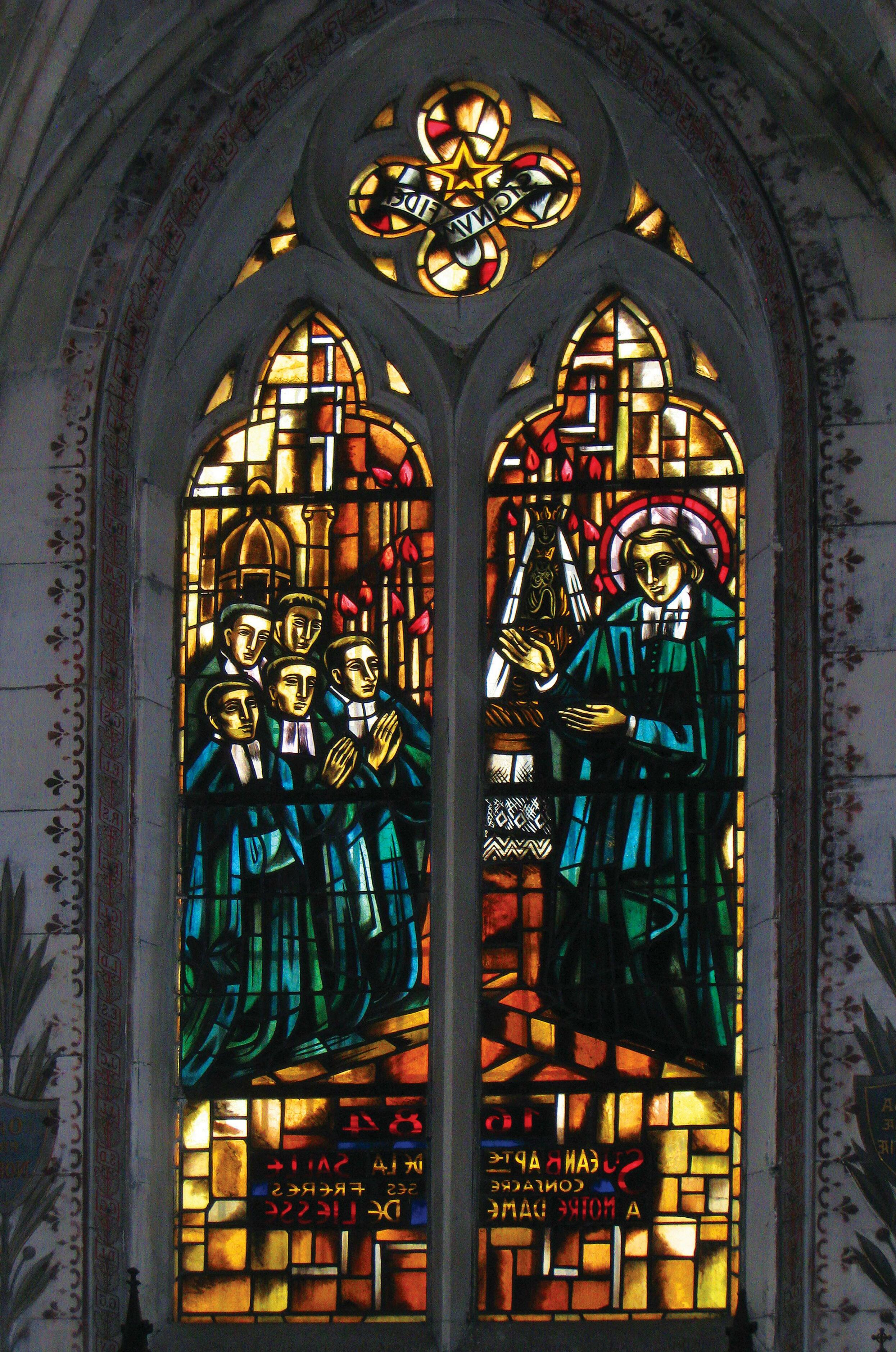 Cover: St Baptist de La Salle depicted in stained glass in the Notre Dame de Liesse.