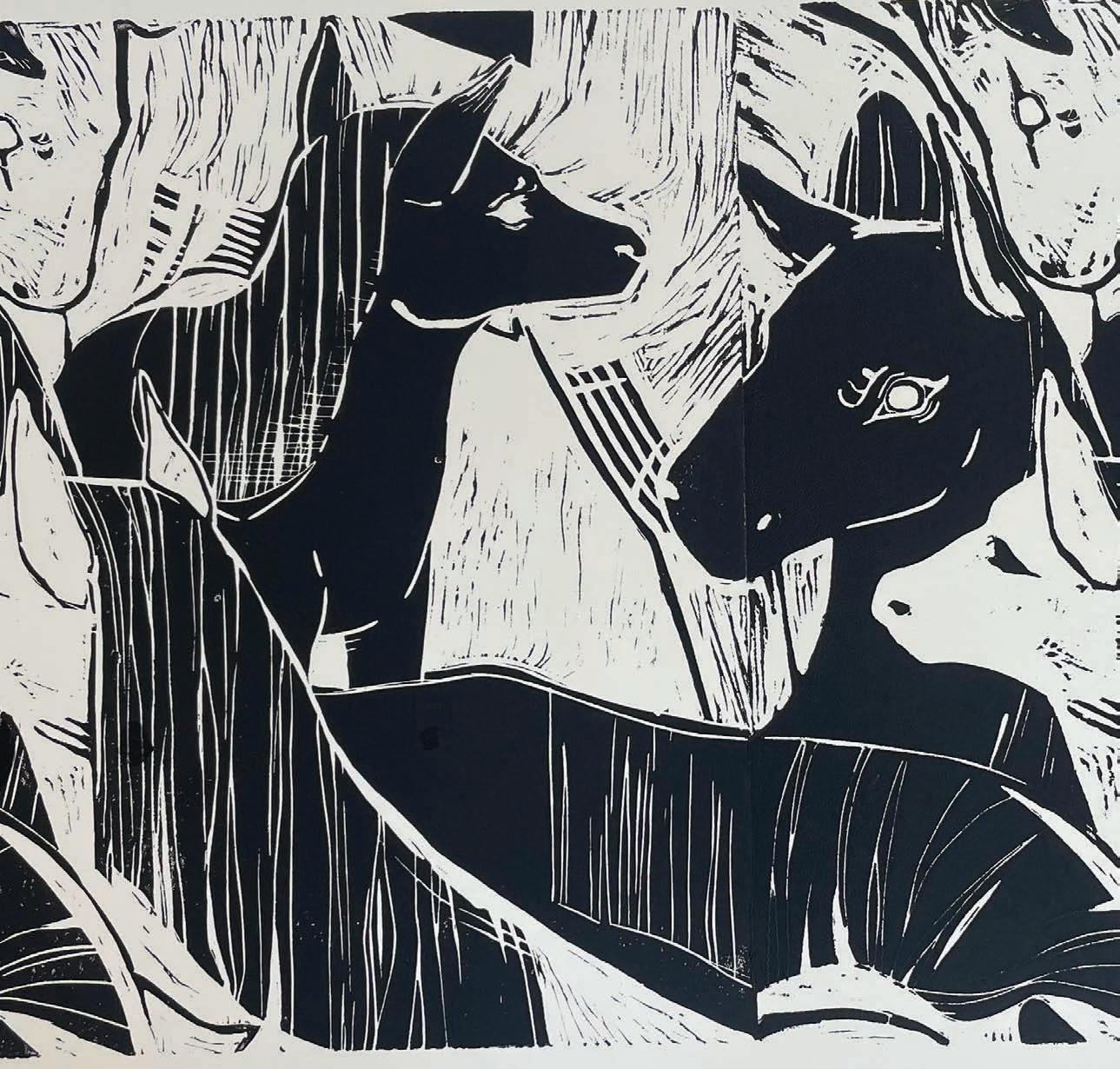34-35. Juliet Jackson, Linoleum Block Print