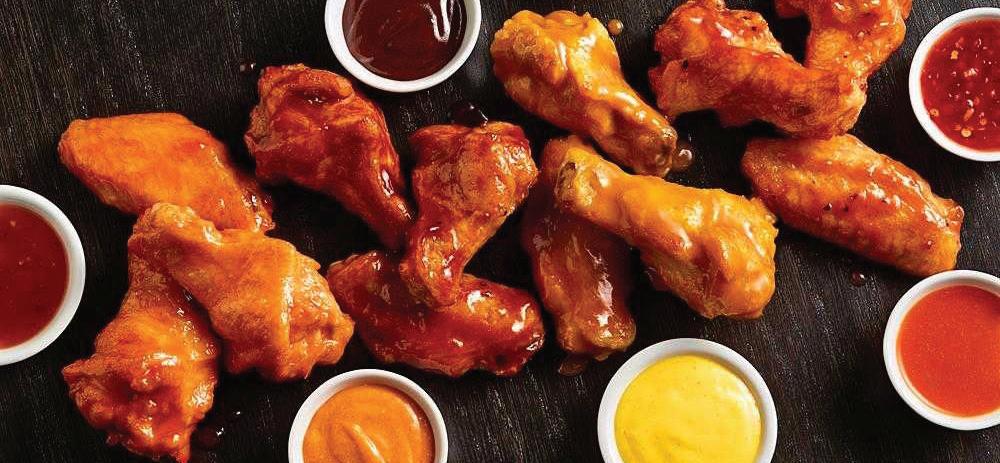 Assortment of bone-in flat and drumette cuts. Features a signature fiery pepper glaze #1007086 2 / 5 lb