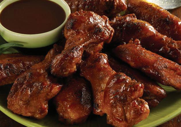 Assortment of bone-in flat and drumette cuts featuring a southern style sweet and tangy BBQ double glaze for enhanced flavor. #1006736 2 / 5 lb
