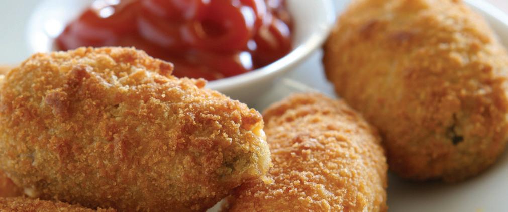 Full-flavored cheddar cheese and spicy diced jalapeño in a light, crispy potato flake breading #1008200 6 / 2.5 lb