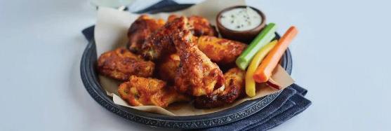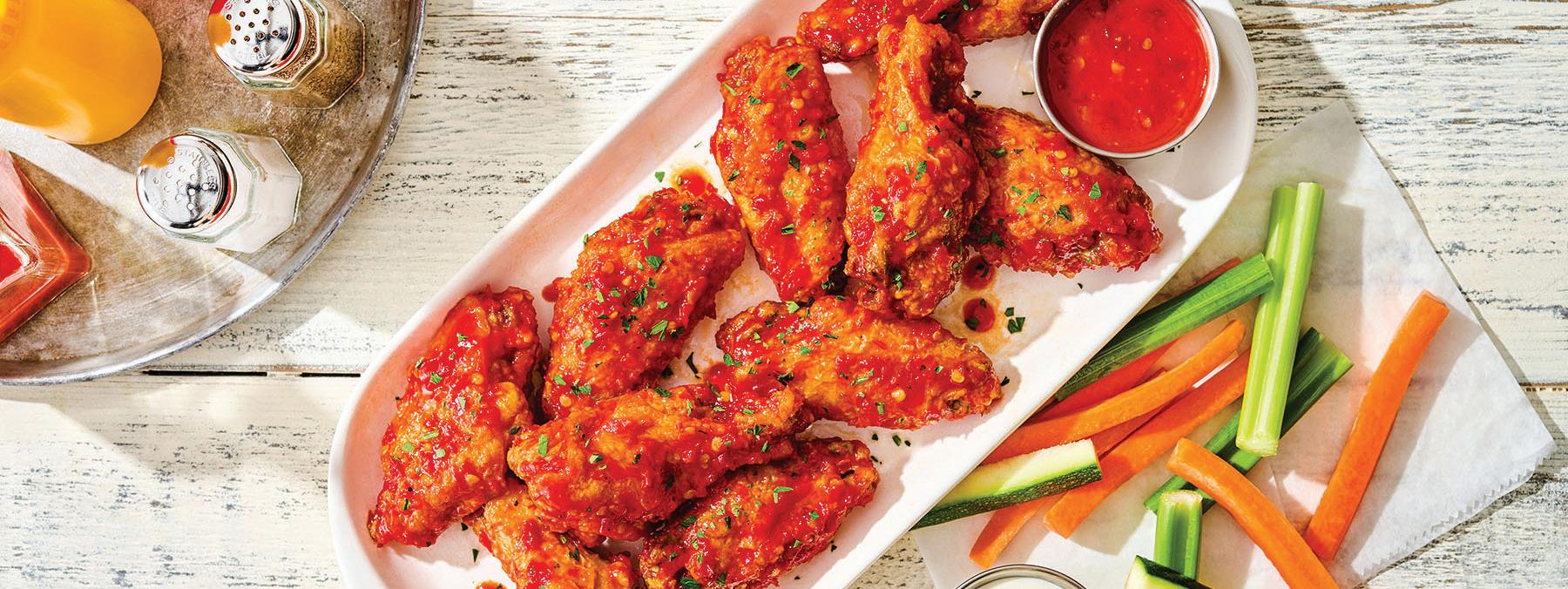 Crispy, oven-baked wings coated in a flavorful hot and tangy sauce #1009104 2 / 5 lb