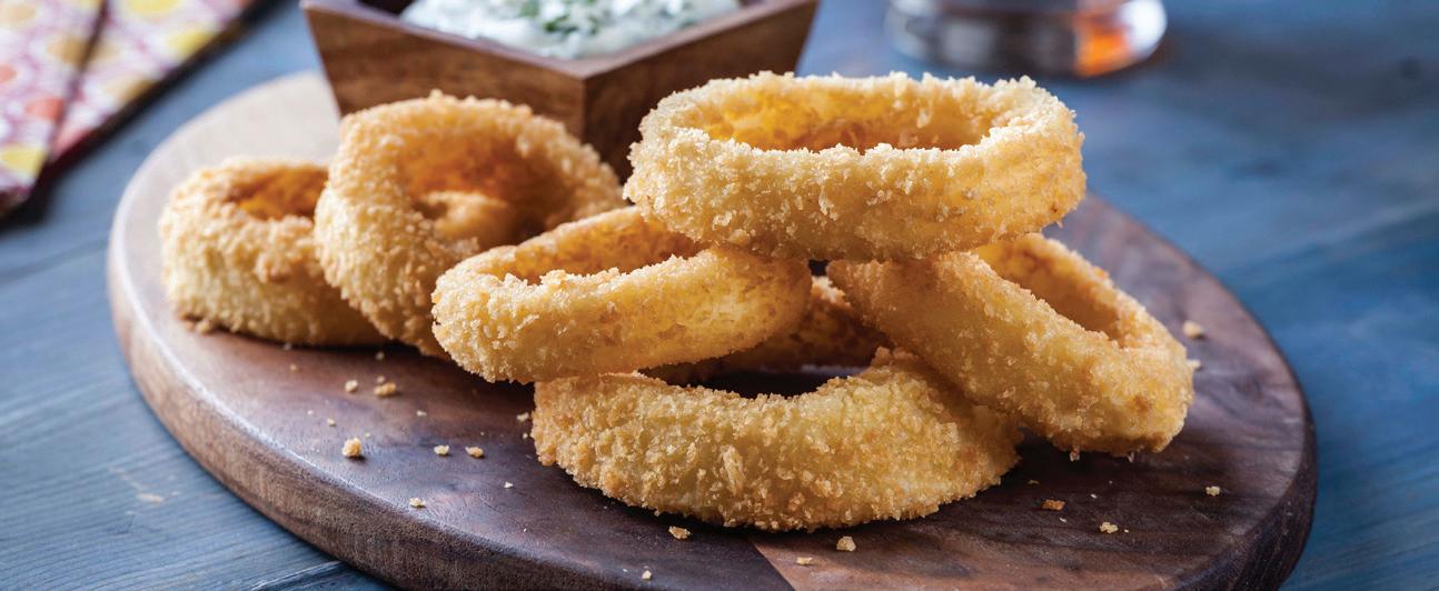 Covered with satisfying homestyle breading, these natural, sweet Spanish onion rings are great for big appetites #1003307 4 / 2 lb
