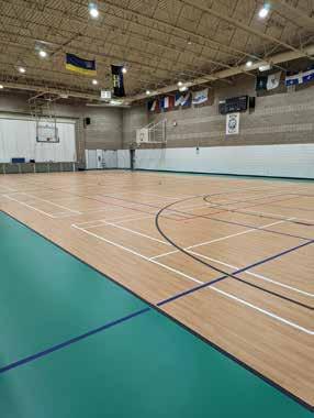 two practice basketball courts, two volleyball courts, and six badminton courts. There is also a 1,184 square foot fitness centre.