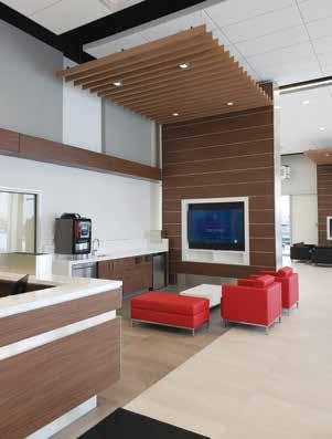 “The dealership is two levels and spans just over 27,000 square feet gross floor area,” explains Corrado. “It consists of a modern well-lit showroom complete with a customer area and a separate new vehicle delivery area. The three-bay service drive-thru with one bay—dedicated as a lube bay—will be able to handle several vehicles at a time.”