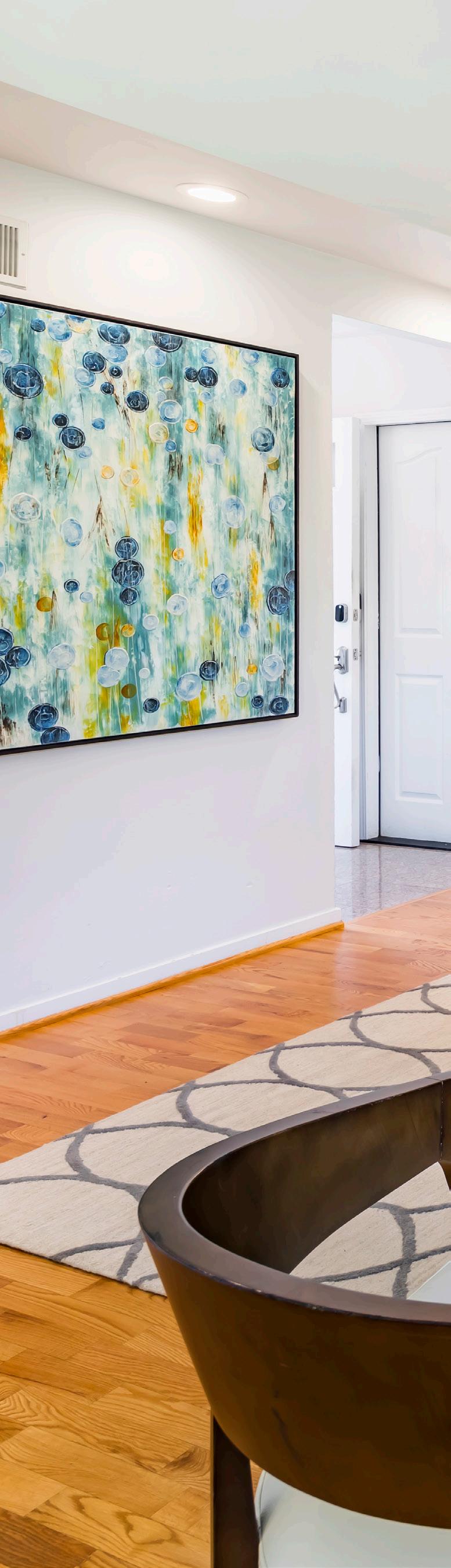 • T he free-flowing floorplan begins in the large living room, which is centered by a fireplace