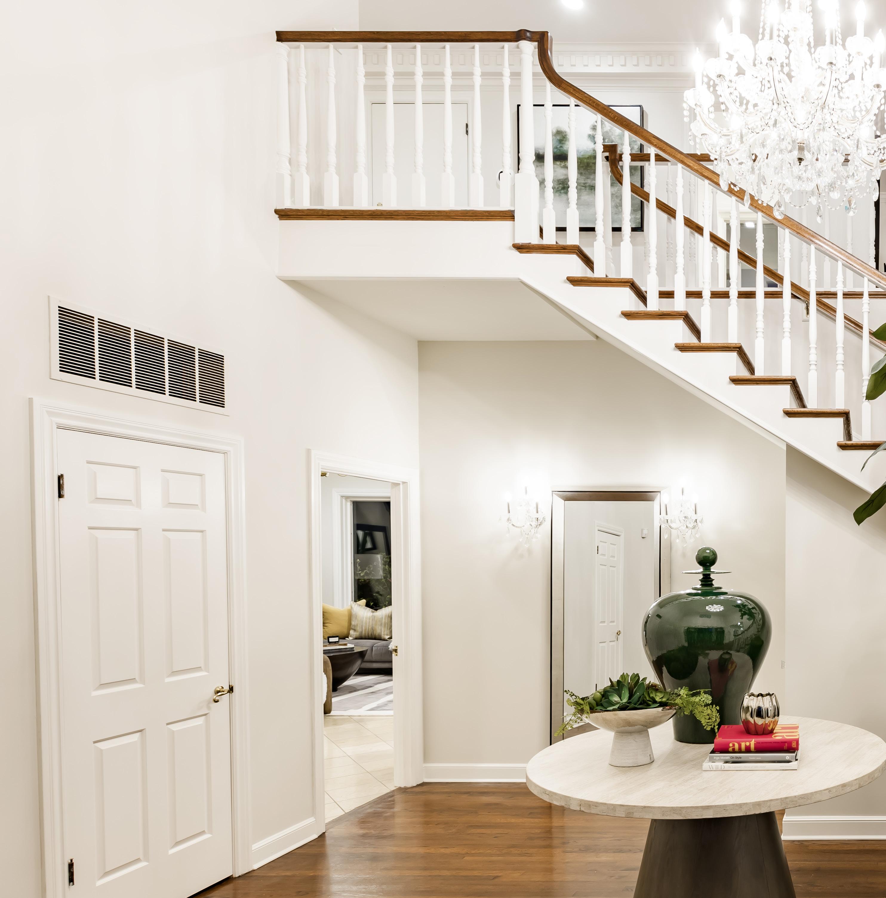 • Front door opens to grand foyer and staircase; soaring ceilings and tremendous natural light craft a bright, airy ambiance throughout