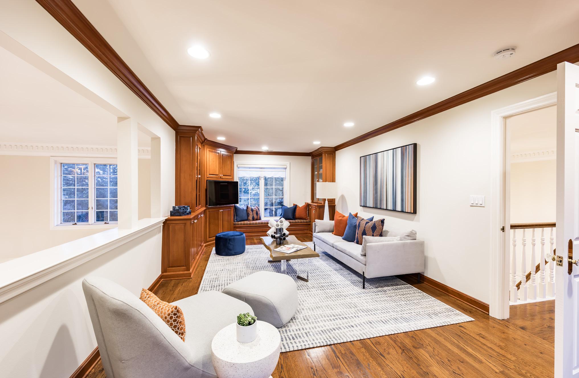 • Upstairs library with built-in shelving; expansive space may also be used as a lounge or second family room