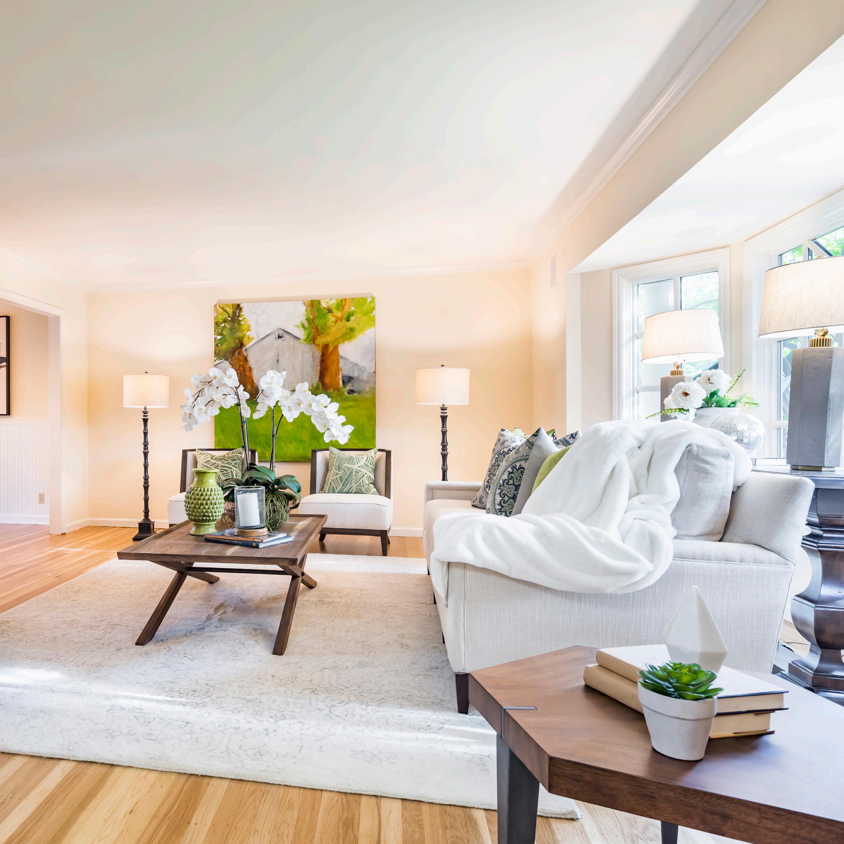 • The beautiful entryway with custom-tiled floors welcomes you, while comfortable spaces begin with the living room brightened by a bay window, and continue into the elegant dining room featuring wainscot wall detail and access to a backyard patio for indoor/outdoor dining