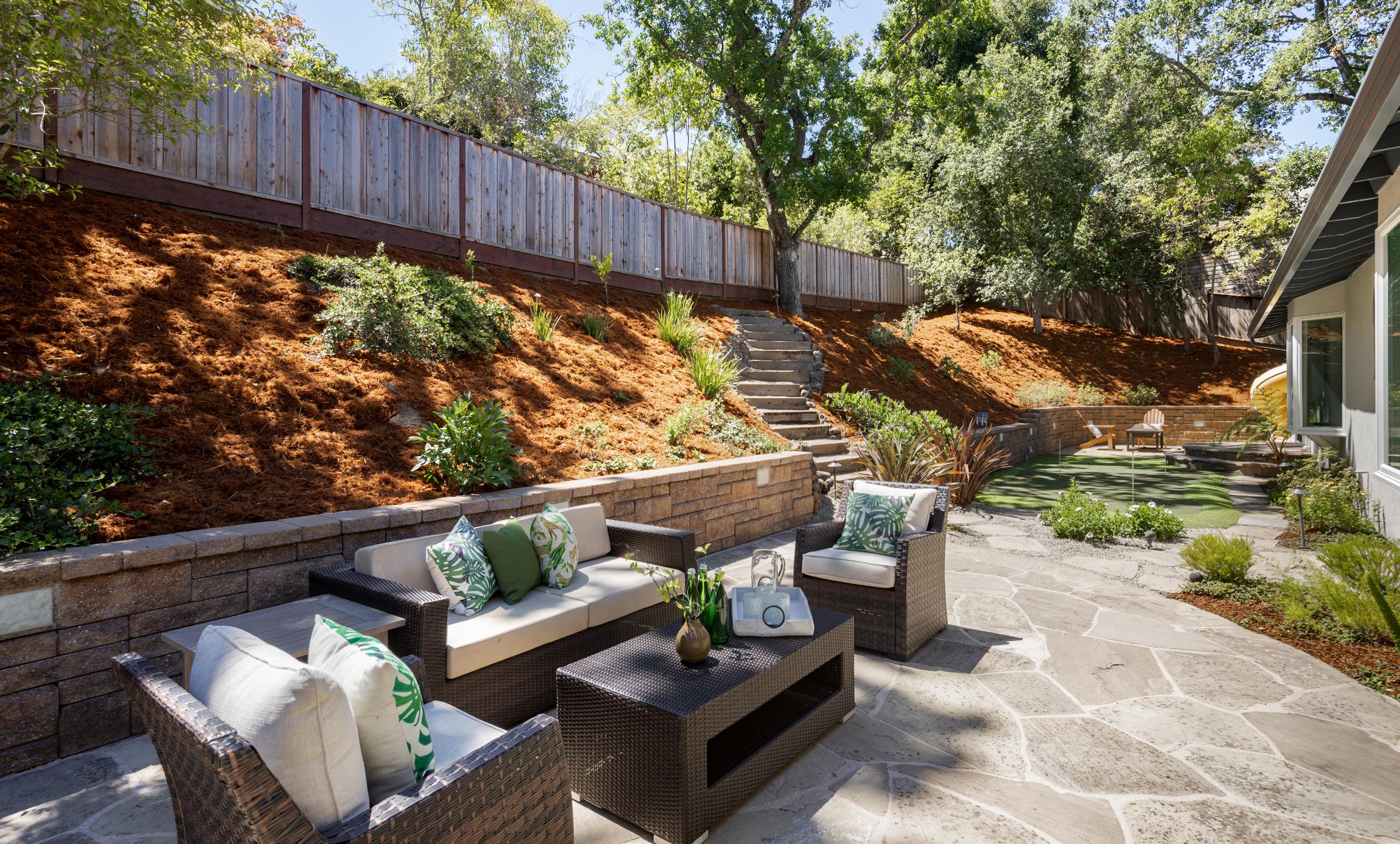 • Peaceful backyard space perfect for outdoor enjoyment with large patio, putting green, planter area, and a delightful waterfall backdrop