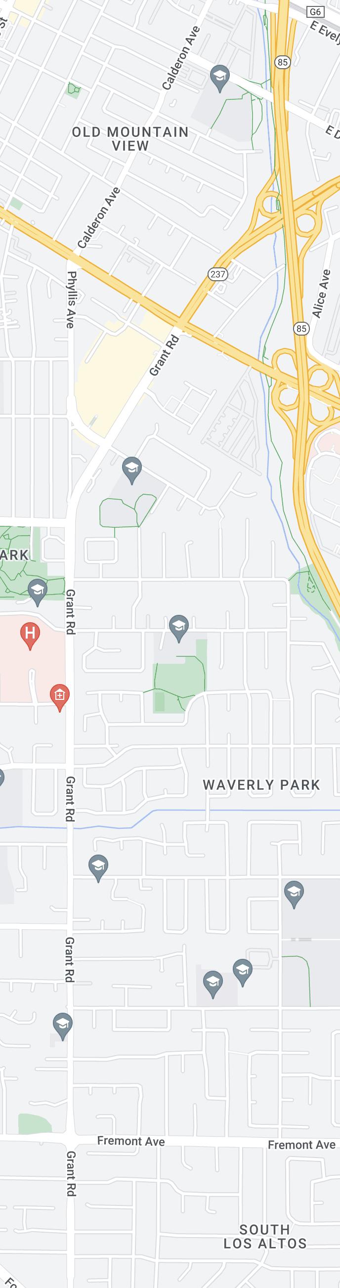 • Outstanding location convenient to numerous parks including Cuesta and Bubb; short drive to 99 Ranch Market and Nob Hill Foods; convenient to downtown Los Altos; walking distance to downtown Mountain View; easy access to Highway 85 and 237; minutes to major tech companies including Apple and Google