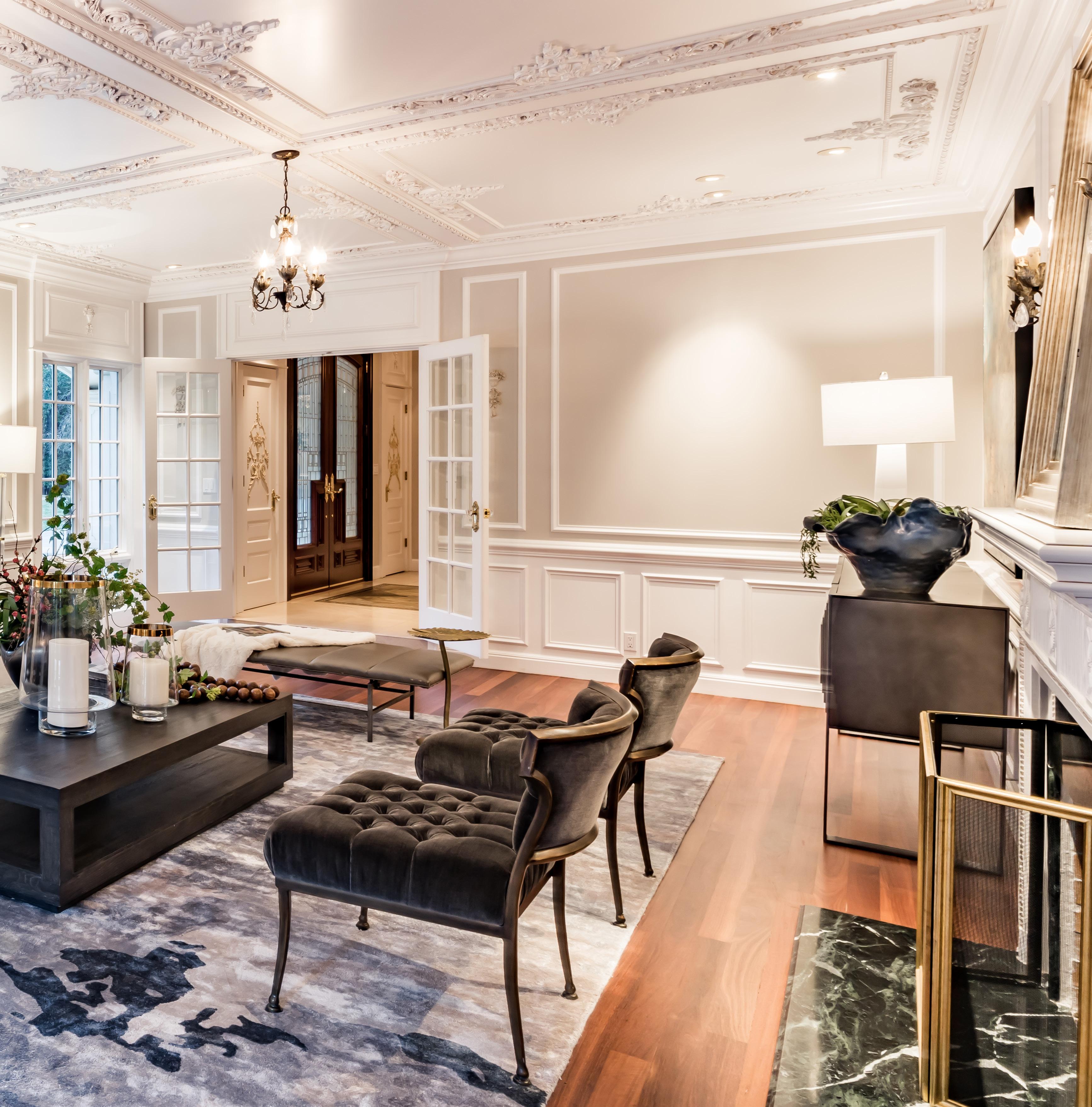 • Custom details and finishes create a luxurious ambiance throughout and include Jarrah and cherry floors, marble countertops and fireplaces, mahogany cabinetry, intricately detailed ceilings, and crystal chandeliers