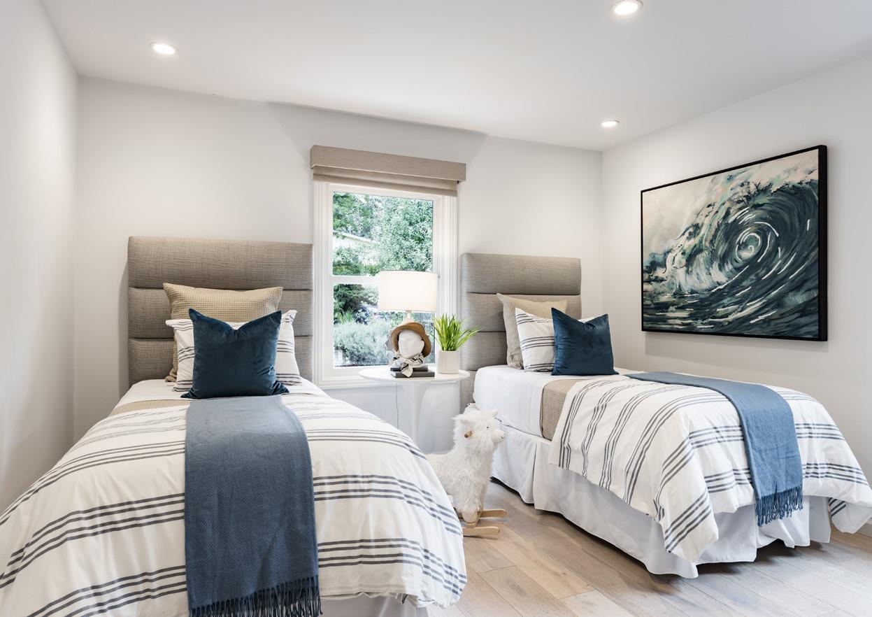 Immerse yourself in style and sophistication the moment you step into this stunning West Menlo home, beautifully appointed both inside and out. Modern Cape Cod-style architecture creates outstanding curb appeal, and inside, nearly 2,800 square feet of living space includes stunning hardwood floors, 2 fireplaces, expansive gathering areas, and the chef’s kitchen with appliances from Thermador and Bosch. The versatile 4-bedroom layout features two distinct upstairs wings, one of which hosts the primary suite complete with a spa-like bathroom, while the other accommodates a bedroom currently tailored for office use. Numerous points throughout the home open to the peaceful backyard featuring plenty of space to entertain and unwind, as well as a built-in grill and sink. And this incredible location puts you within a ~5-minute drive of downtown Menlo Park, close to vibrant parks, convenient to commute options, and within walking distance of acclaimed schools Las Lomitas Elementary and La Entrada Middle (buyer to verify eligibility). 2036Sterling.com