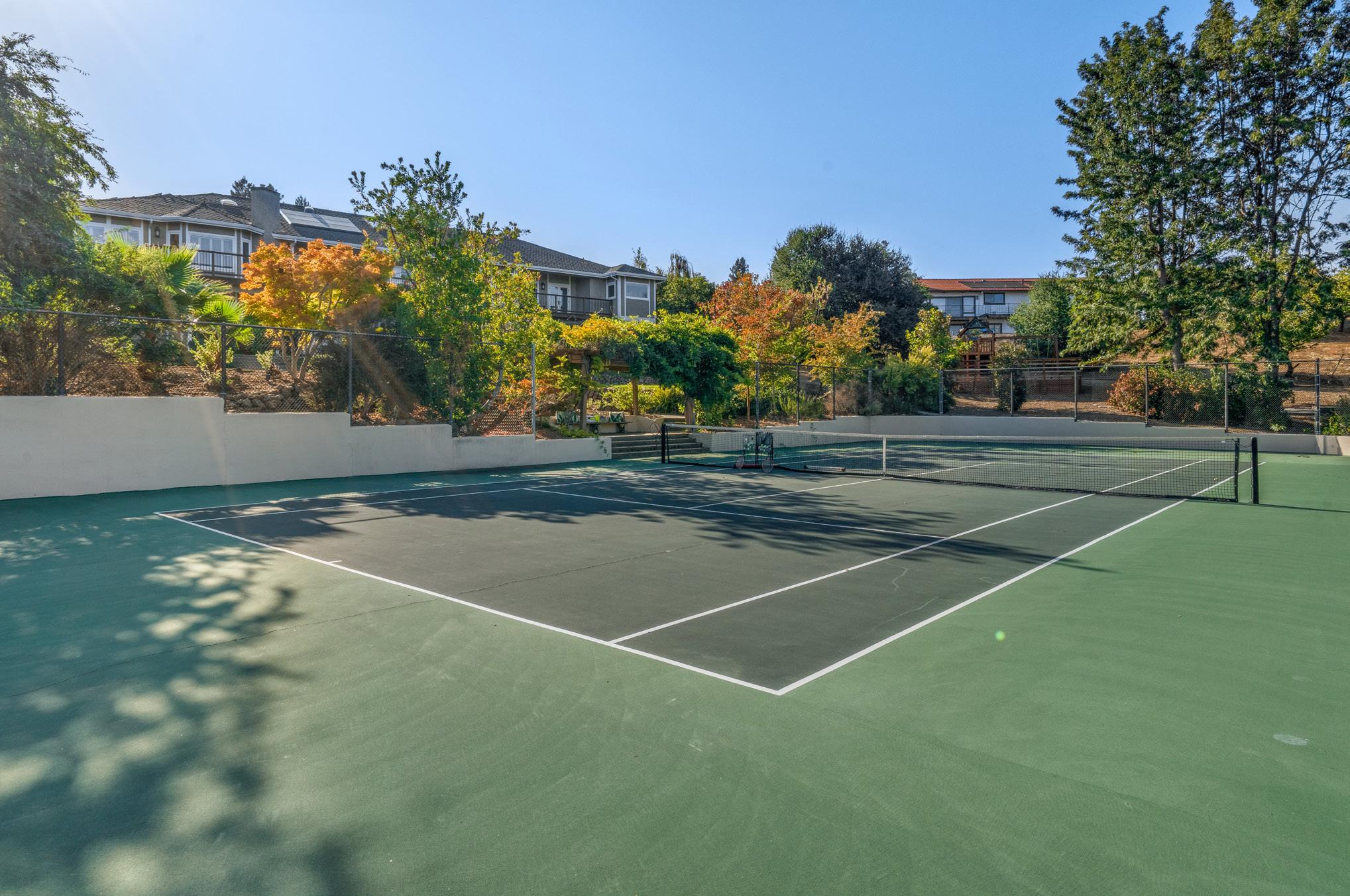 Tucked away in privacy at the end of a cul-de-sac is this magnificently updated 5-bedroom, 6-bathroom home that emanates style and sophistication. Over 5,600 square feet of living space accentuated with hardwood floors, detailed ceilings, and tremendous natural light offers outstanding space for both entertaining and everyday living, with expansive formal rooms, 3 fireplaces, a chef’s kitchen, office, and luxurious accommodations including multiple resort-like bedroom suites. Enjoy the natural beauty synonymous with Los Altos Hills on 5-star grounds of 1.75 acres that feature cascading terraces, a freeform pool, level lawn, and a tennis court, as well as a walking path that meanders through gorgeous landscaping encircling the property. And though you will feel far removed from the fast pace of Silicon Valley, you will still be just a 5-minute drive from downtown Los Altos and the Rancho Shopping Center, and less than a half-mile from Interstate 280, with acclaimed public and private schools close at hand (buyer to verify eligibility).