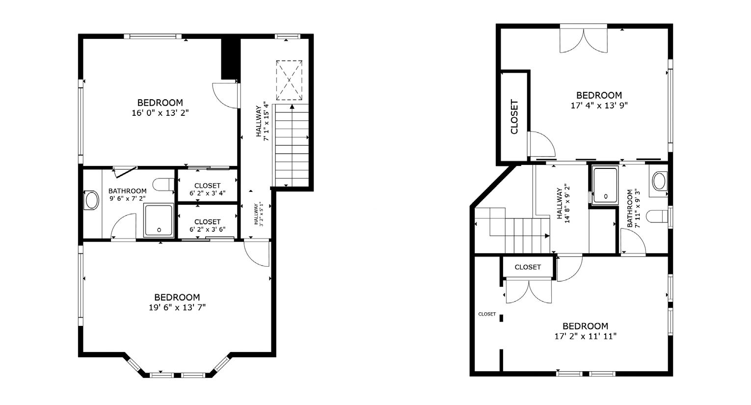 • A staircase from the foyer leads upstairs to two bedrooms that share a Jack-n-Jill bathroom with a shower