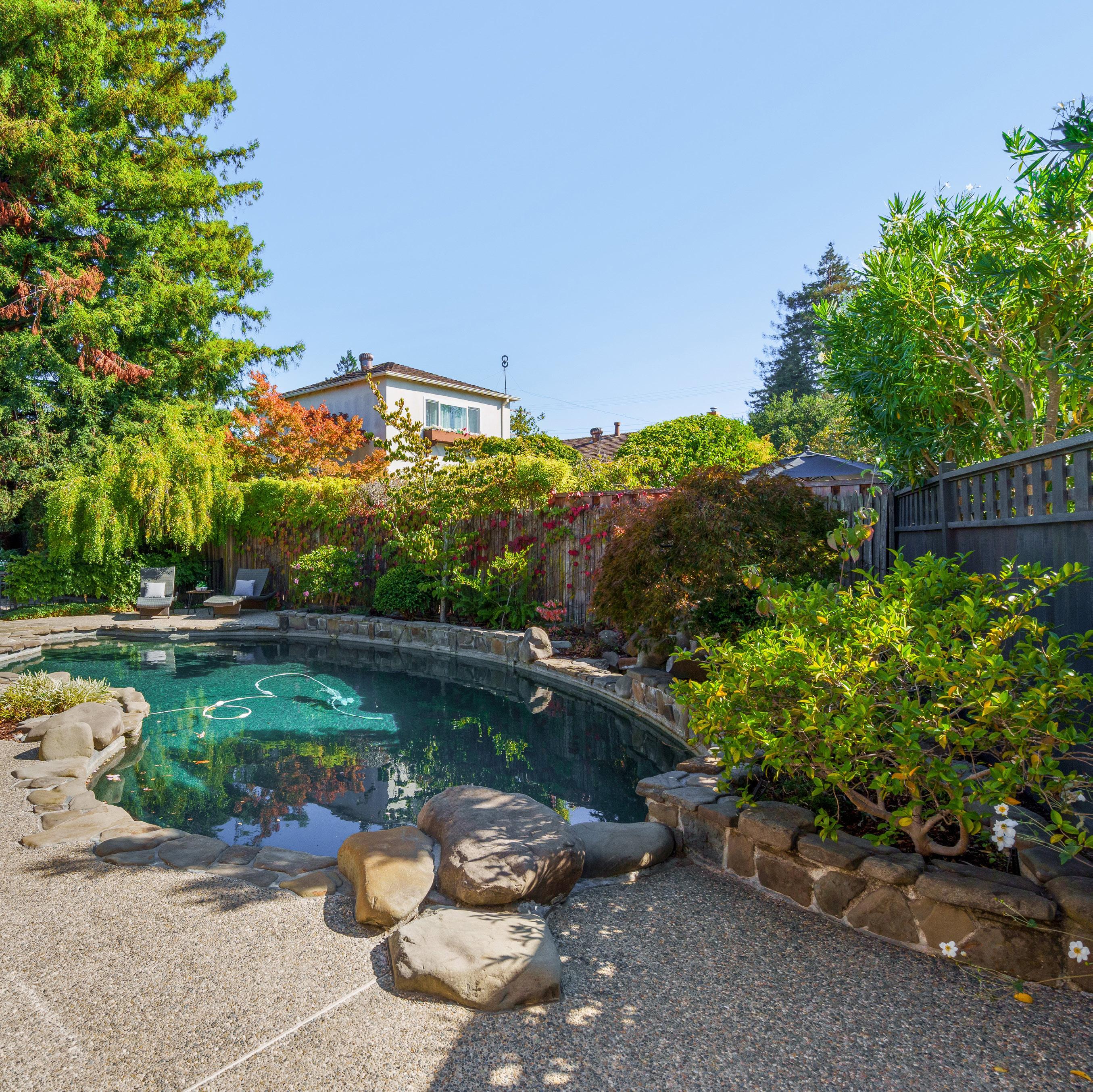 Light, bright interiors and a coveted address in the esteemed Crescent Park neighborhood highlight this spacious home set at the end of a cul-de-sac. High, vaulted ceilings and excellent use of glass craft an airy ambiance throughout over 2,400 square feet of interior space that enjoys new flooring, fresh paint, and new carpeting. The floorplan offers a fireplace in the living room, the dining room that adjoins the kitchen for easy entertaining, and comfortable bedrooms including the primary suite with a fireplace and private balcony. The stunning backyard is an entertainer’s dream and features a large deck, pool, and a verdant canopy of trees and privacy hedges. Topping it all off is a location within walking distance of Eleanor Pardee Park, the shops and restaurants along University Avenue, and Caltrain, with access to top-ranked schools Duveneck Elementary, Greene Middle, and Palo Alto High (buyer to verify eligibility).