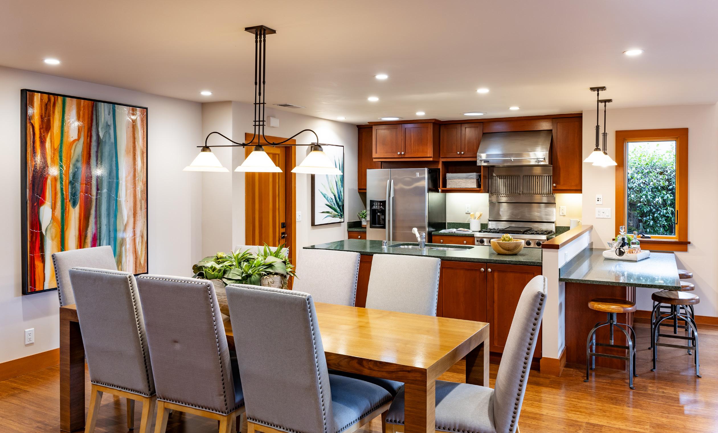 A model of refined sustainability, this inviting 4-bedroom Midtown home proudly bears the distinction of being GreenPoint rated. Every detail within this thoroughly renovated home is intended to foster comfort and efficiency. From sustainably harvested Bamboo floors to reclaimed wood accents, drought-tolerant front landscaping, a resilient steel roof, substantial insulation, and a myriad of other features, each element contributes to the thoughtful design. This home exudes the ambiance of a cozy mountainside retreat, with more than 2,300 square feet of living space highlighted by stunning cherry and redwood accents, a floor-to-ceiling stone fireplace in the living room, the chef’s kitchen equipped with highend appliances, and a family room that seamlessly opens to the outdoors. Environmentally conscious choices continue into the backyard filled with nearly a dozen different types of fruit-bearing trees and plants, as well as plenty of space to enjoy the outdoors. And this great location is within walking distance of the Midtown Shopping Center, Mitchell Park, and top-ranked schools such as JLS Middle (buyer to verify eligibility).