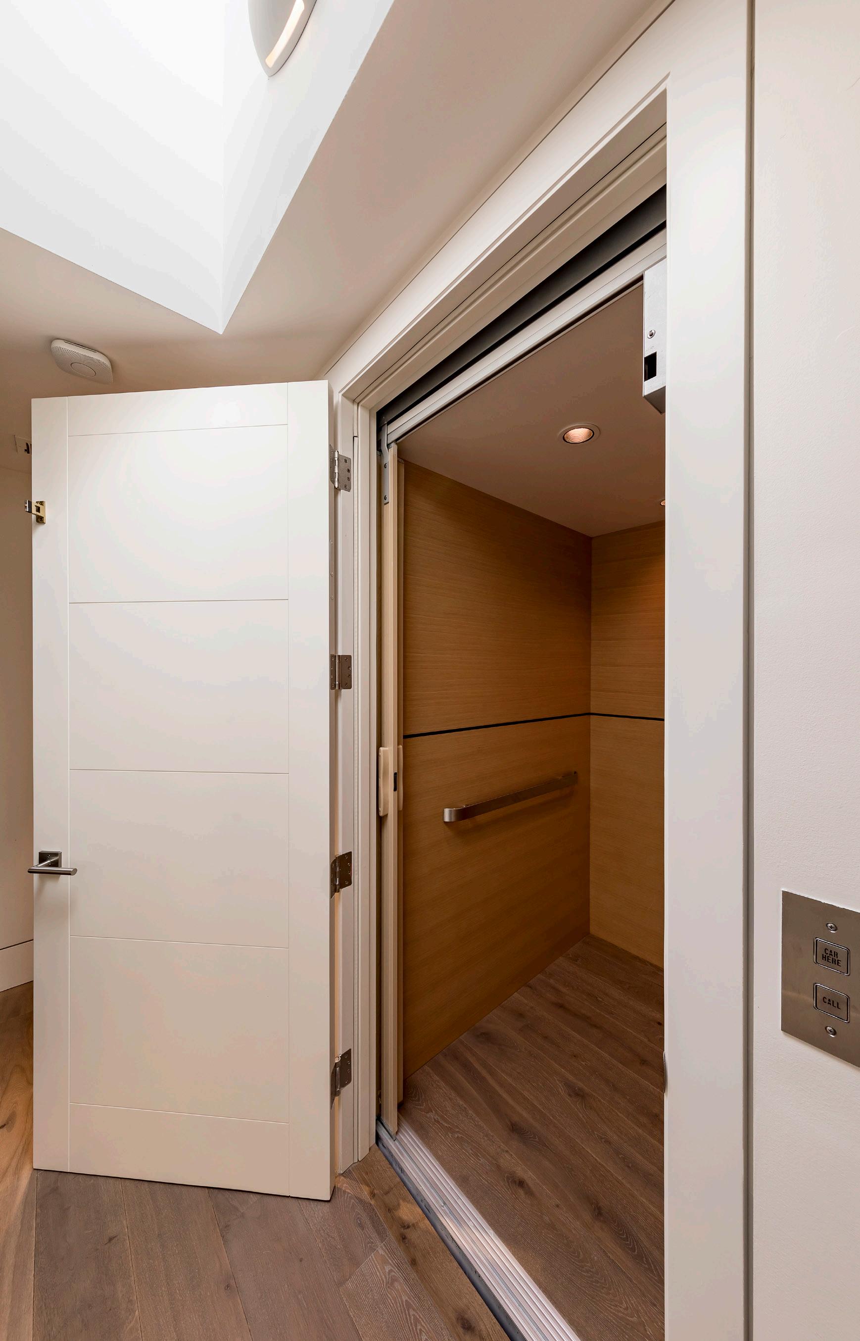 An elevator provides convenience in connecting all three levels