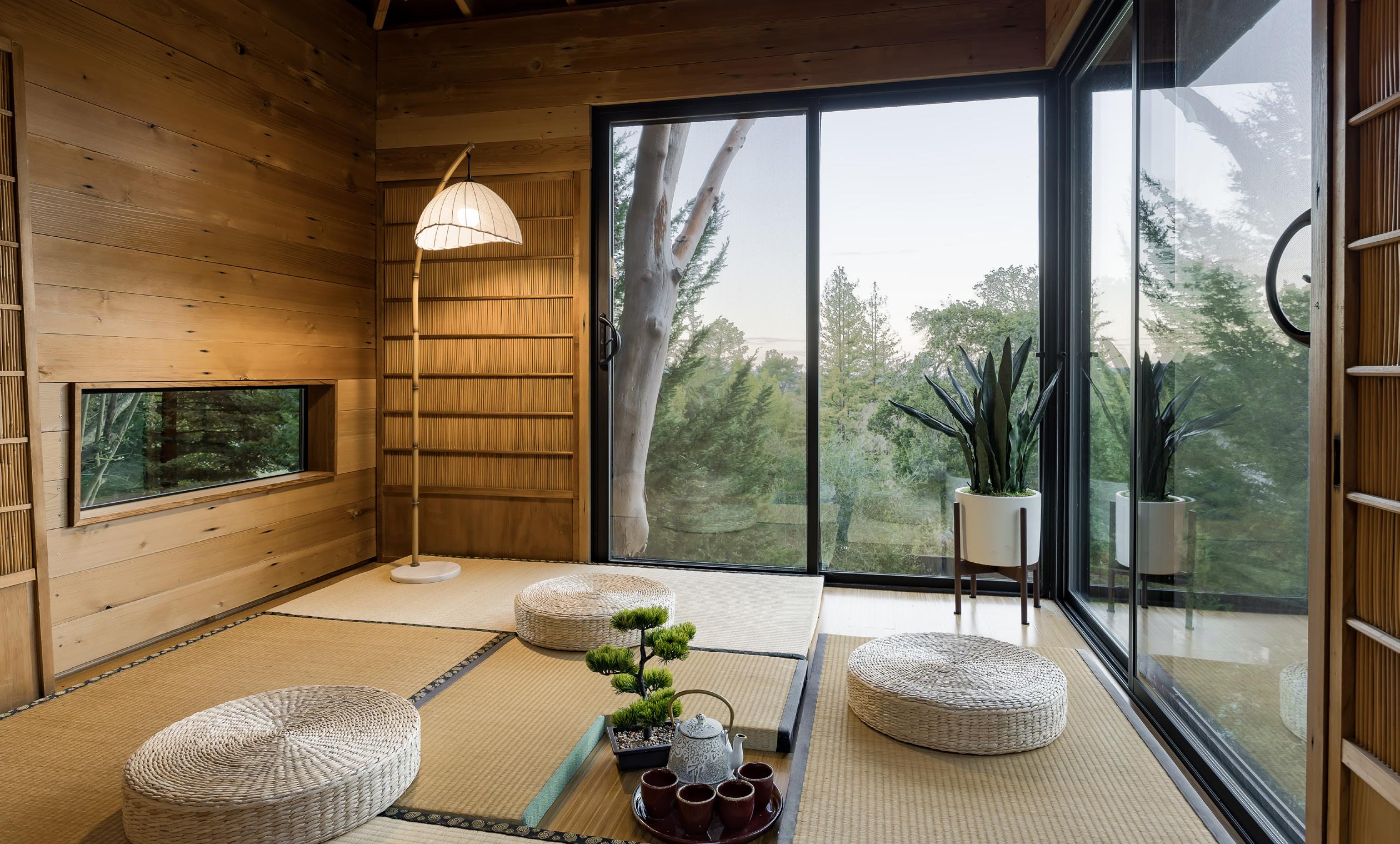 • Sprawling, multi-level grounds include patio space, deck, fruit trees (Japanese citrus yuzu and pear apple), planter boxes, and swimming pool; grounds also feature delightful tea room as well as reading room