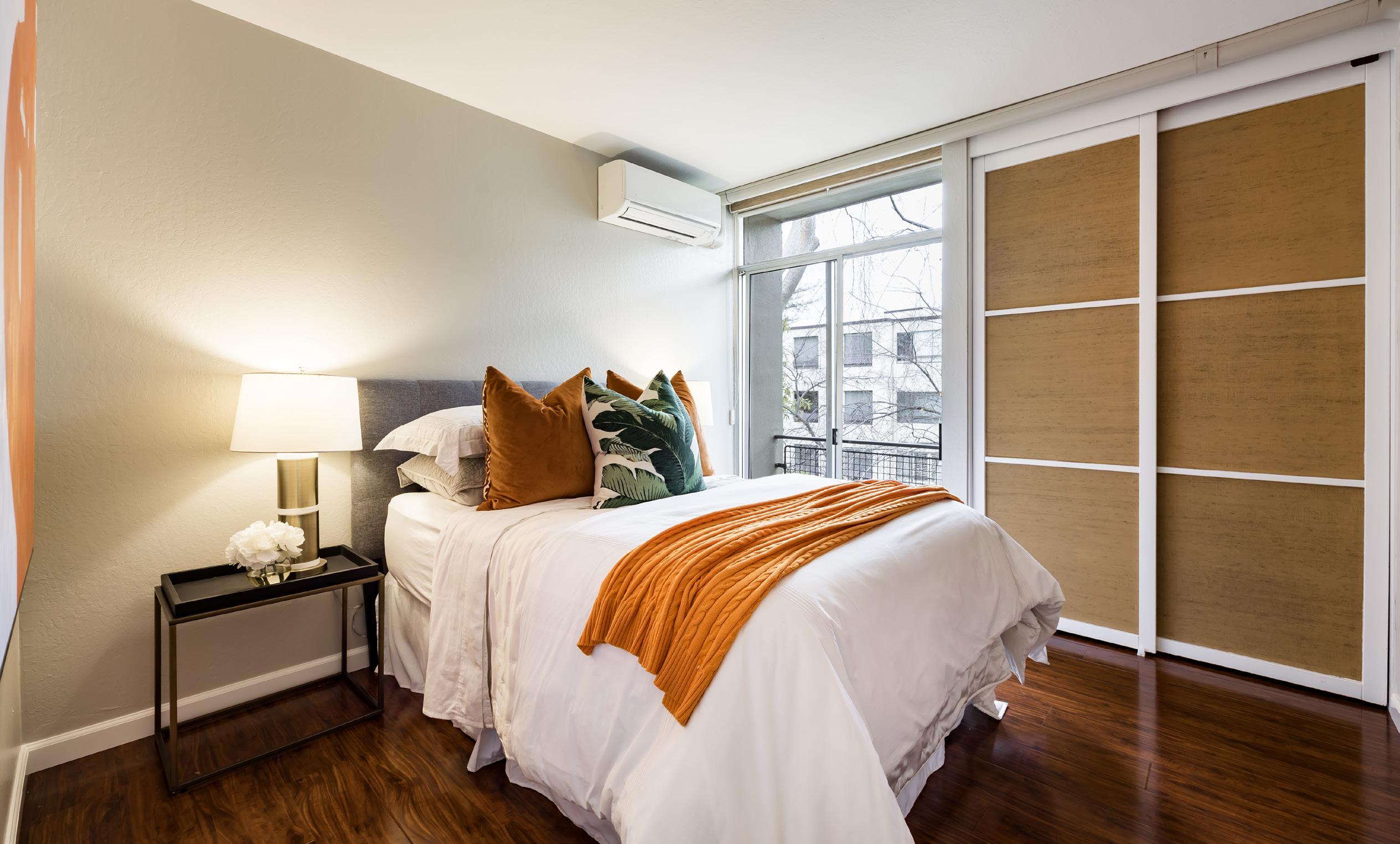 • Top-floor corner unit condo in a complex designed by the renowned Joseph Eichler, with many Eichler features such as radiant heated floors and floorto-ceiling windows