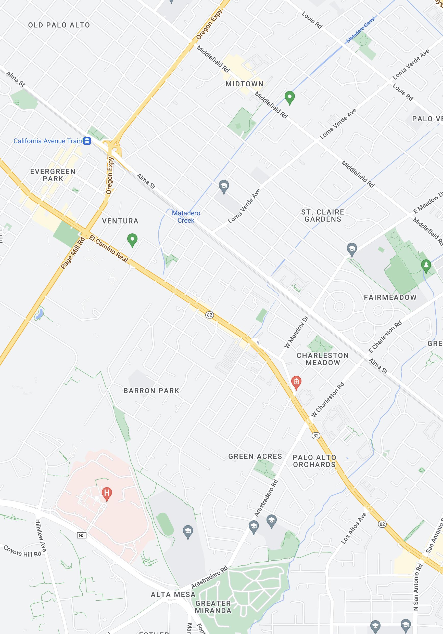 • Walking distance of Robles Park, Mitchell Park, and Cubberley Community Center; short drive to shops and restaurants of California Avenue and The Village at San Antonio Center; ~5-minute drive to Caltrain and US-101