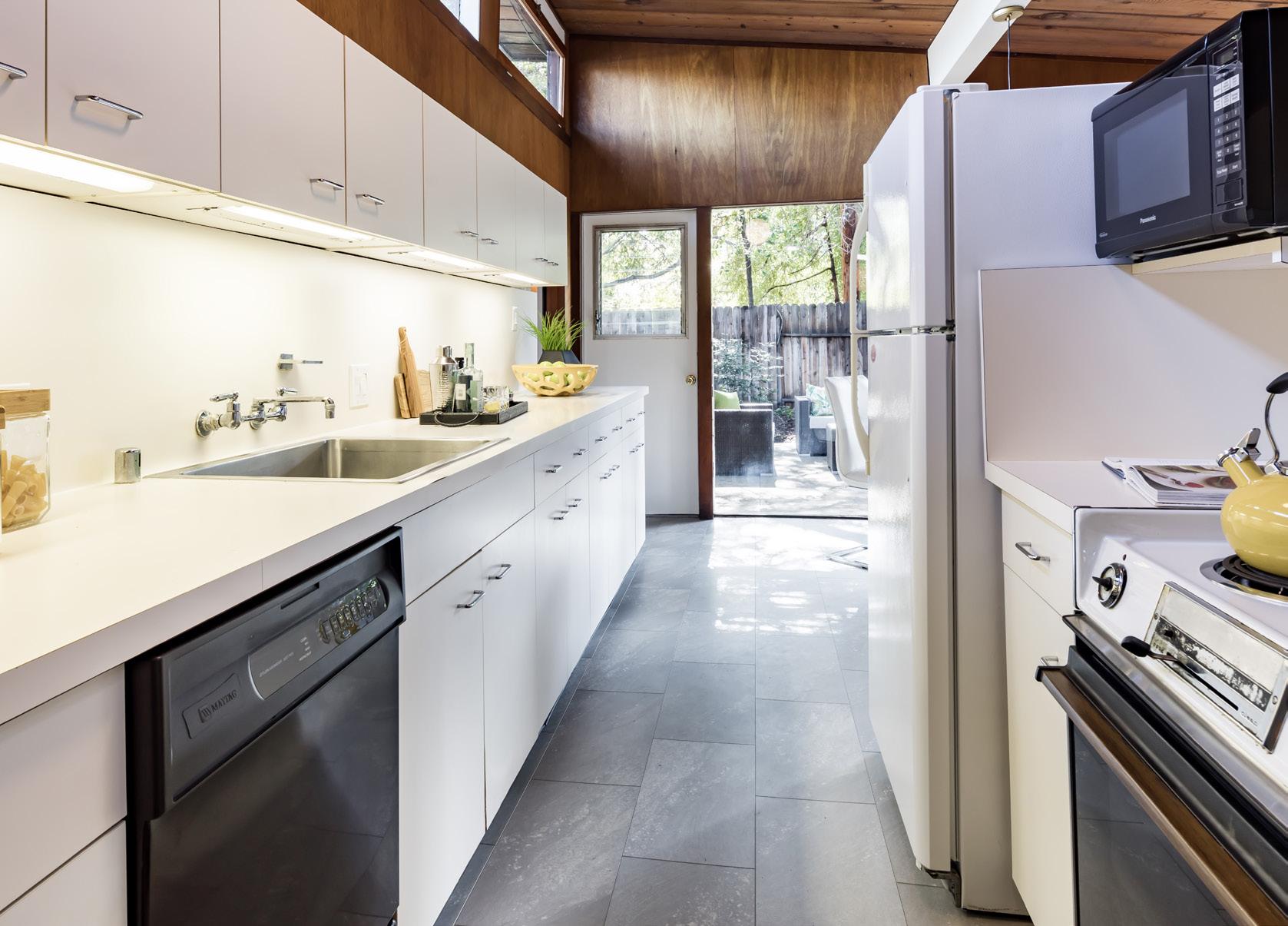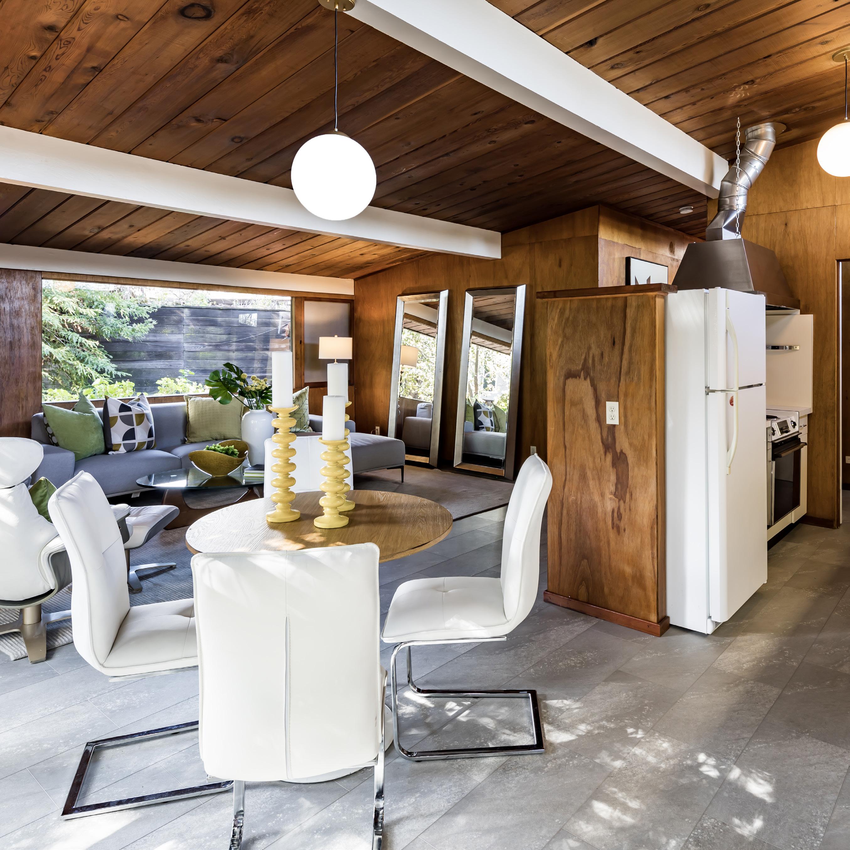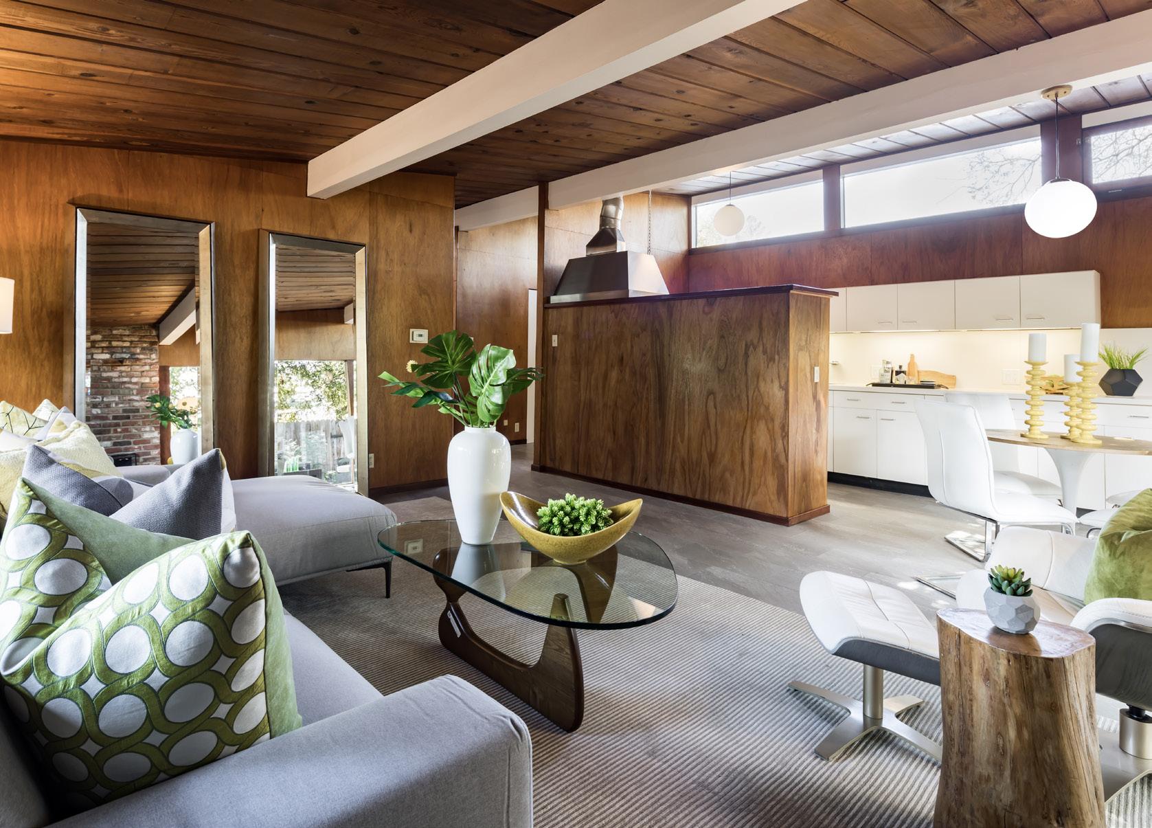 • Timeless Eichler details throughout including a beamed paneled ceiling, radiant heated floors, clerestory and floor-to-ceiling windows, and a nature-hued palette