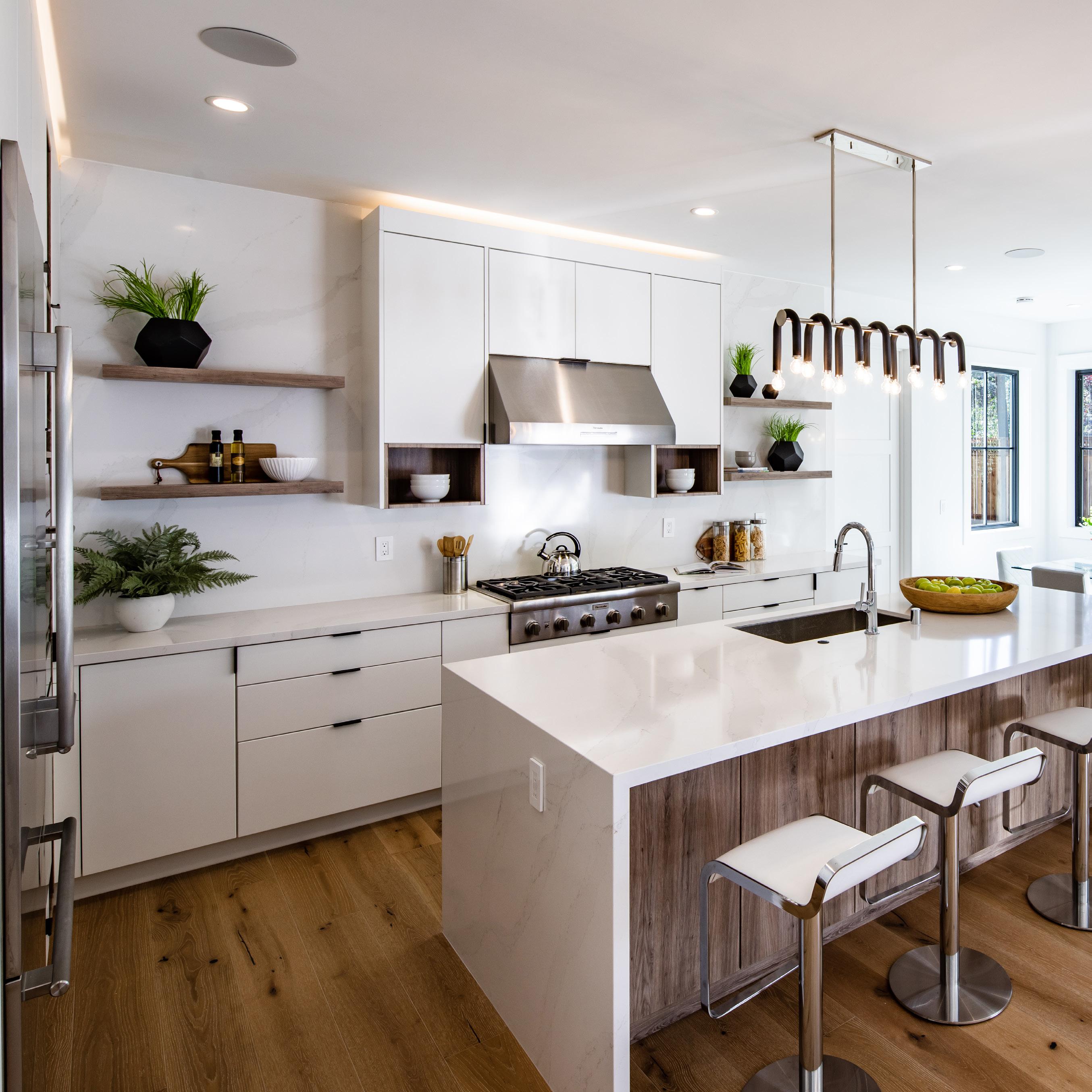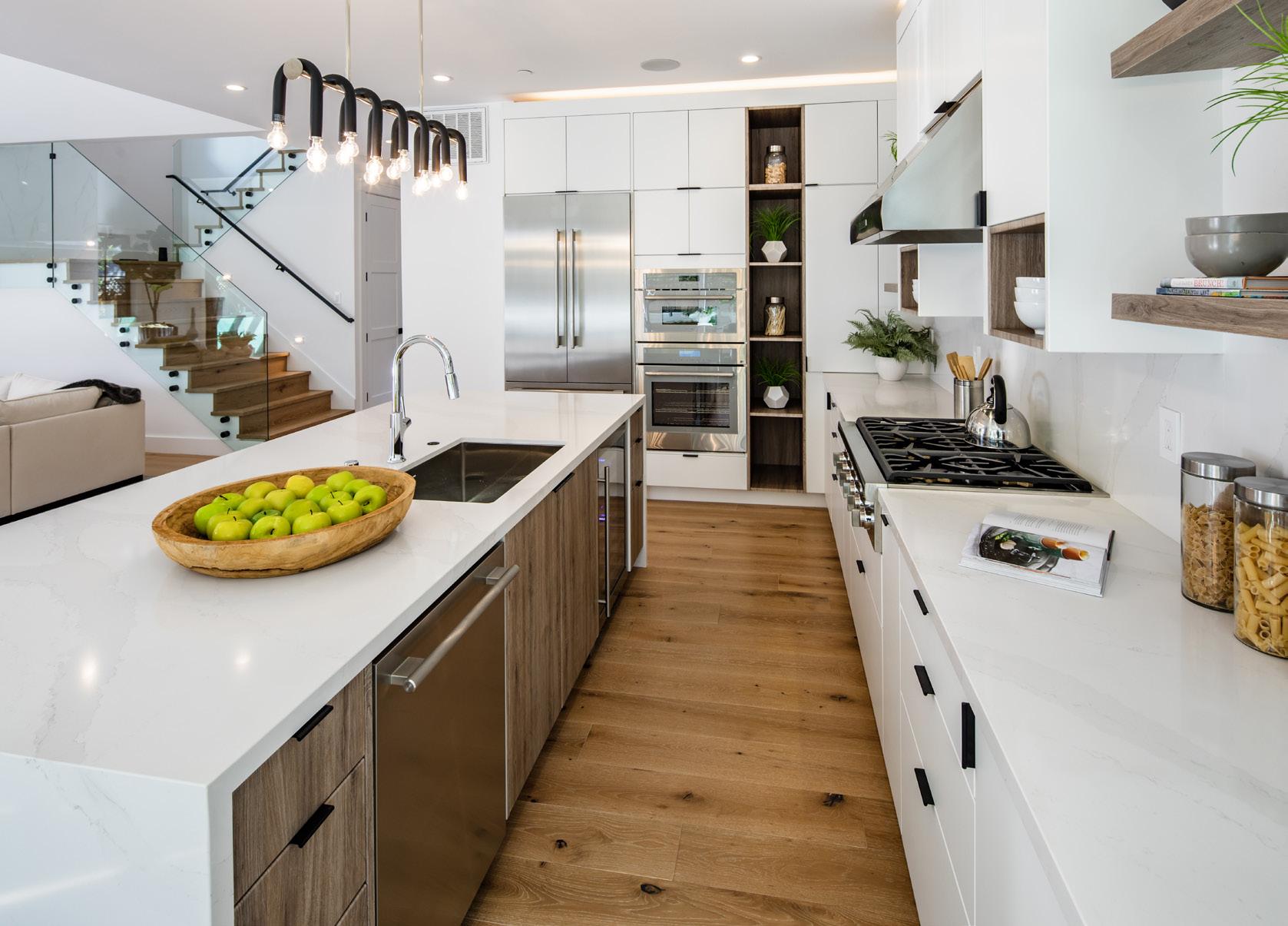 • High ceilings and tremendous natural light craft a bright, airy ambiance from the moment you step inside, and this home has been luxuriously appointed with wide-plank engineered hardwood floors and quartz countertops
