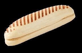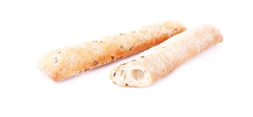 ΠΡΑΣΙΝΕΣ ΕΛΙΕΣ 74818 80 γρ. | 46 τμχ/κιβ To bastoncino είναι ένα τυπικό ιταλικό ψωμί, η επιτομή της ιταλ ικής τεχνογνωσίας αρτοποιίας. Ιδανικό για «aperitivo»! 4΄- 5΄ 200°C Το Bastoncino είναι ένα μικρό, χρυσαφένιο bread stick, συχνά πασπαλισμένο με αλάτι, αρωματικά βότανα, ελιές ή τριμμένο τυρί. Αυτό το τραγανό ψωμί είναι ιδανικό για dip σε σάλτσες, ως ορεκτικό, μόνο του, ή ακόμα και ως συνοδευτικό σούπας. ΜΕΡΙΚΩΣ ΨΗΜΕΝΟ Αυτό το sandwich είναι φτιαγμένο με το μοναδικό και ευέλικτο bastoncino, καθιστώντας το μια απολαυστική επιλογή για μεσημεριανό γεύμα. Με χρόνο προετοιμασίας μόλις 15 λεπτά, είναι η τέλεια επιλογή για café που θέλουν να σερβίρουν ένα υπέροχο sandwich χωρίς αναμονή. DRESSING • 5 ΛΕΠΤΆ Tips Αν θέλετε να αποφύγετε το ψήσιμο στον φούρνο, μπορείτε να αφήσετε το bastoncino να ξεπαγώσει για περίπου 6 ώρες, να το κόψετε κατά μήκος και να το βάλετε στην τοστιέρα για 45 δευτερόλεπτα. Συνταγή Παράγεται στην Ιταλία με αλεύρι σίτου από διαφορετικές χώρες