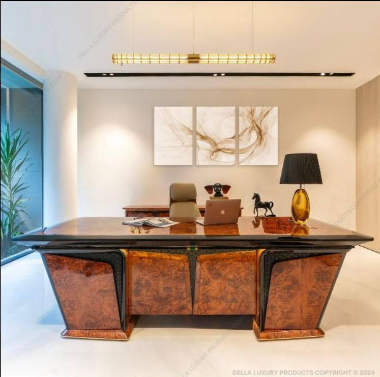 Alborz Cabin Desk : The Luxury Senior Management Desk, Meeting & Conference Tables are crafted from premium materials, featuring auto-uplifting table tops, USB Charging Ports, and Grommet Pop-Up Boxes. With fingerprint-activated drawers, internal lighting, and customizable finishes, this collection offers a complete luxury office concept. Choose from exotic to traditional finishes for a sophisticated and functional workspace. Ideal for high-end office settings.
