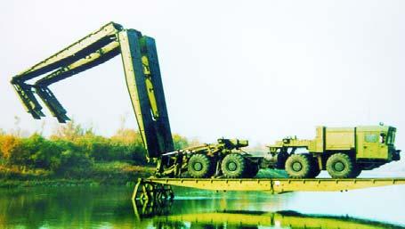 The TMM-6 heavy bridge-building system is designed to lay multi-section bridge crossings across gaps up to 100m wide and 5m deep to provide mobility to wheeled and tracked vehicles weighing up to 60 tonnes. Features