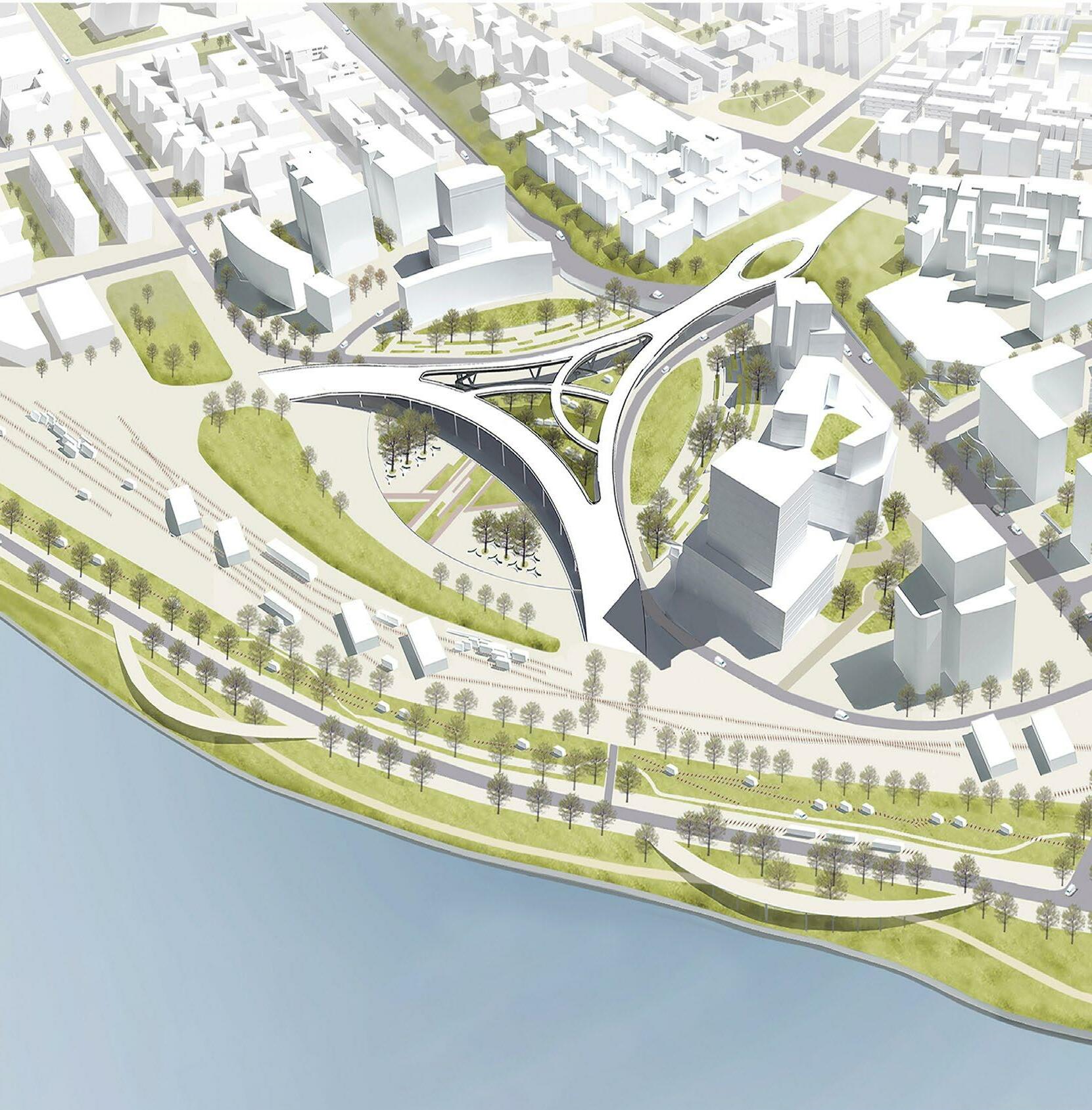 Replanning of complicated road system integration of residential area, additional roadway and recreational trails in the river. The structure of the road network in the planning area is formed as a "vertical, horizontal, and one ring" structure.