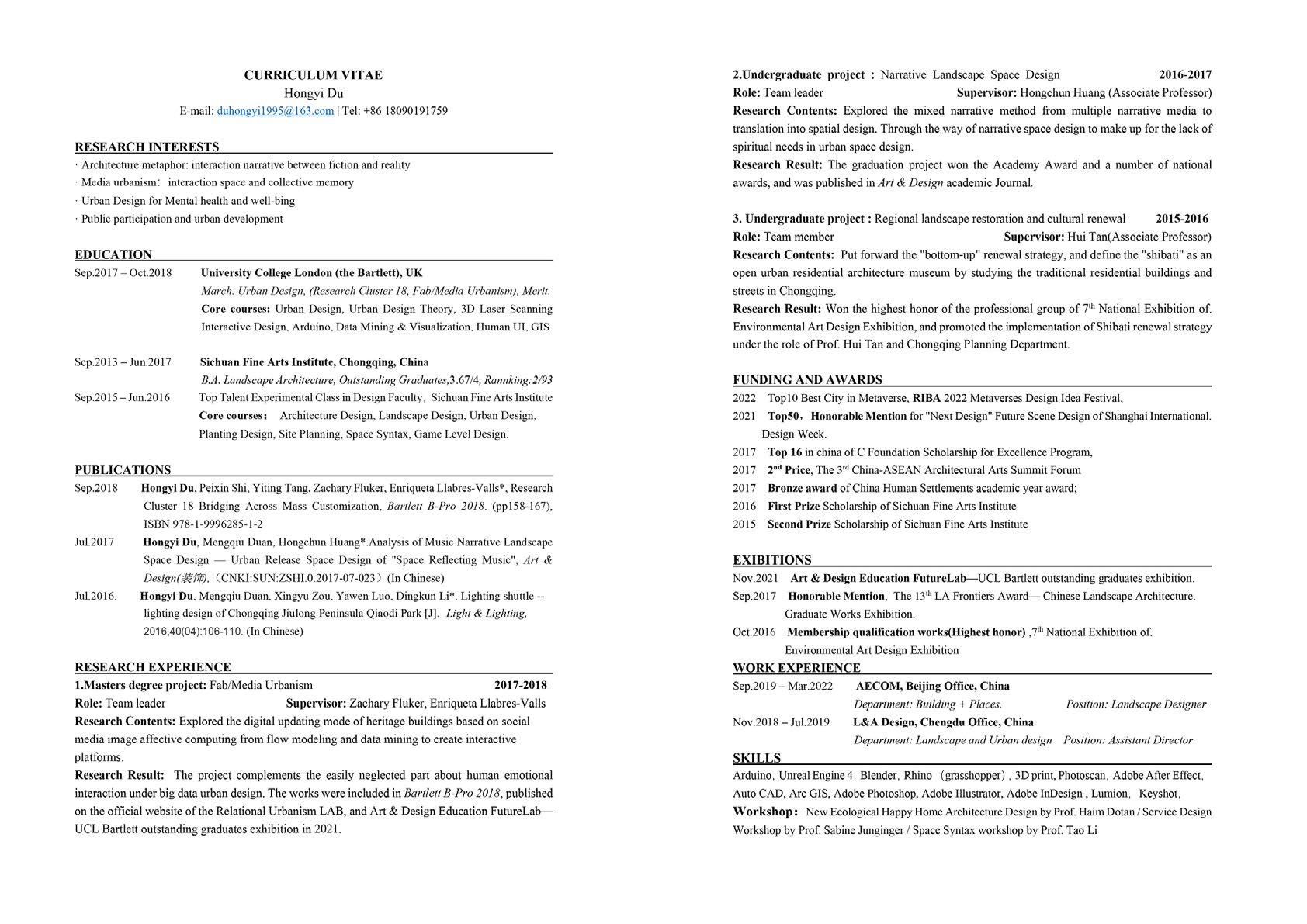 Hongyi Du 2016 - 2021 Feel the world with your heart and try to convey warmth and value. WANDER, EXPLORE, DISCOVER ... 彷徨 探索 发现