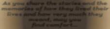 As youshare thestories and the memories of howthey livedtheir lives andhowverymuchthey meant,mayyou find comfort...