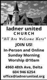 I miss you every day, Mom! MARKETPLACE Call or email to place your ad, Monday through Friday 8:30am to 4:30pm 604 362 0586 • 604 653 7851 dtjames@glaciermedia.ca • nmather@glaciermedia.ca Book your ad on ne anytime at delta optimist.adperfect.com classifieds.delta optimist.com Your Community OBITUARIES
