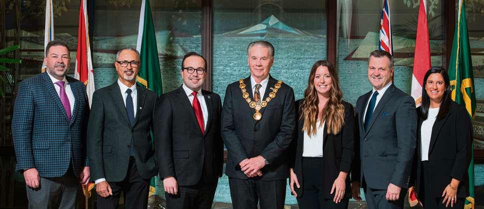 The Delta Chamber of Commerce held its 113th Annual General Meeting on Tuesday morning at Cascades Casino Delta. The new board of directors was announced and sworn-in by Mayor George Harvie, who also provided an address to the approximately 168 in attendance. Board chair Rosanne Horner also held a question and answer session with Mayor Harvie. The new board pictured back row left to right; Sheena Sidhu (Yard at a Time Concrete Ltd.), Pierre Pelletier (Delta Optimist), Ken Malenstyn (Barnside Brewing), Yvonne Anderson (Santevia Water Systems Inc.), Sam Lang, Secretary/Treasurer (Stoilen, Alston & Lang), Steven Stark (Tsawwassen Shuttles Inc.), Jill McKnight, Executive Director; front row left to right; Nathan Lauer (Seaspan Ferries Corporation), John Bourbonniere (Harbour Link Container Services Inc.), Rosanne Horner, Board Chair (BDC) and Rob Allan, Board Vice Chair (Campbell Froh May & Rice LLP).