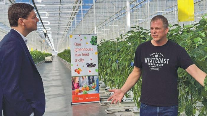 Westcoastfarms55acresofgreenhouses,growing sweet bell peppersin Deltaandproducesand packs7,000 tonnesannually.