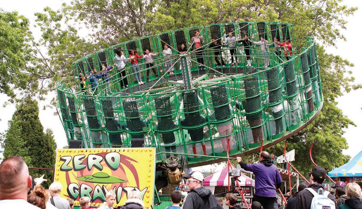 The Zero Gravity ride wasabig attractionin Memorial Park last weekendat the128thannual LadnerMay Days. Despitethe rainy weather,the crowds were good as ever yonehad afuntimeonthe midway,enjoying thecraftmarket, games, food vendorsandthe paradeonSunday inLadner Village. Seemorephotos onour websiteat: www.delta-optimist .com.