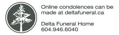 JosiepassedawaySeptember 1stat DeltaHospital after ashort,butcourageousbattlewithALSwith herdaughtersby herside. Shewasbornin Slovenia(Yugoslavia)and called Canadahome after some exciting adventuresinAustria,New YorkandPeru