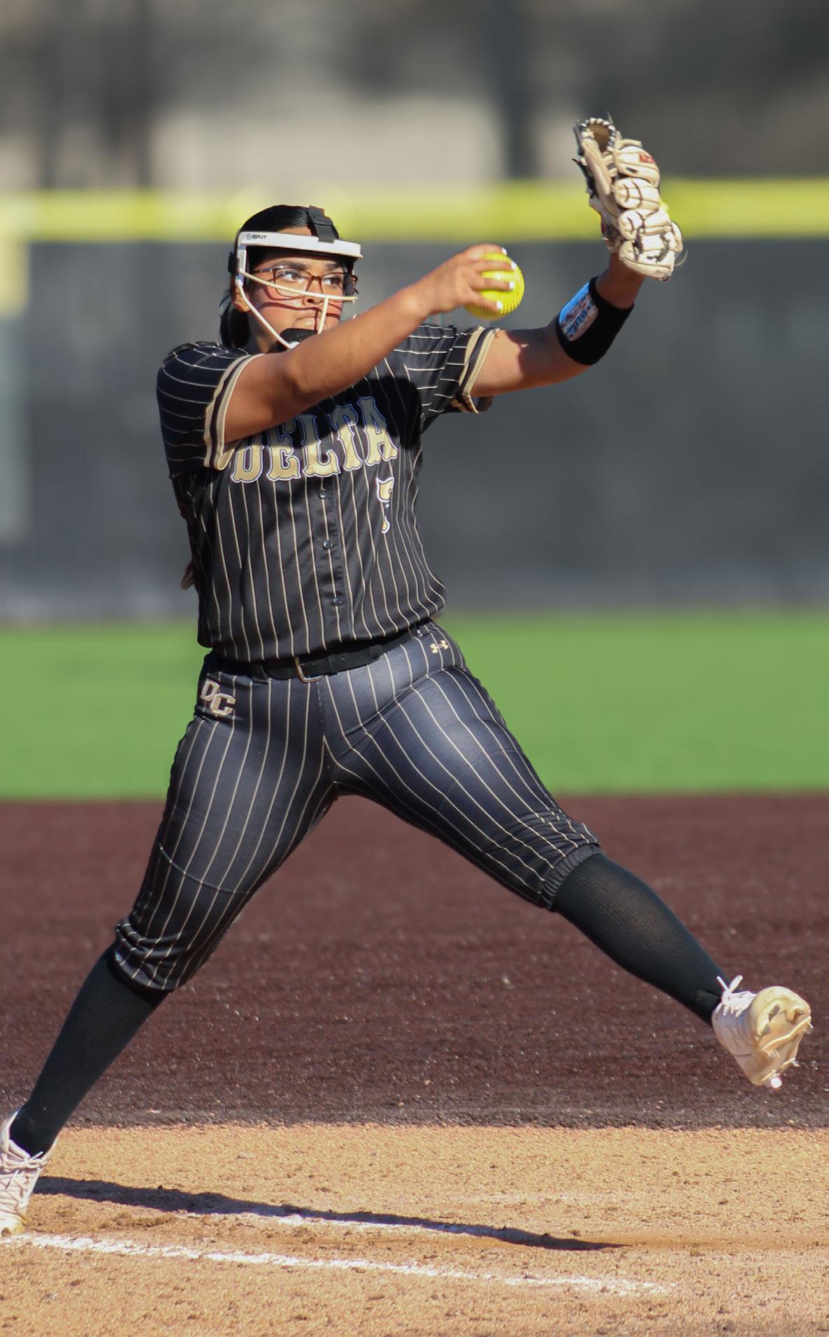 Freshman pitcher Natalie Trujillo waves to the crowd after their win during the doubleheader softball game versus Butte at Bucky Layland Softball Complex on Feb. 22.