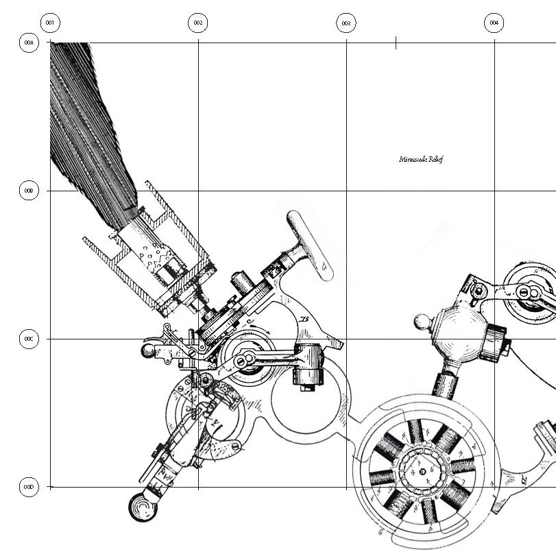 Miniscule Relief is a diagram of exisiting pantent drawings used to create a visual narrative of the leading effects and causes of loss of place for vulnerable communities of color.