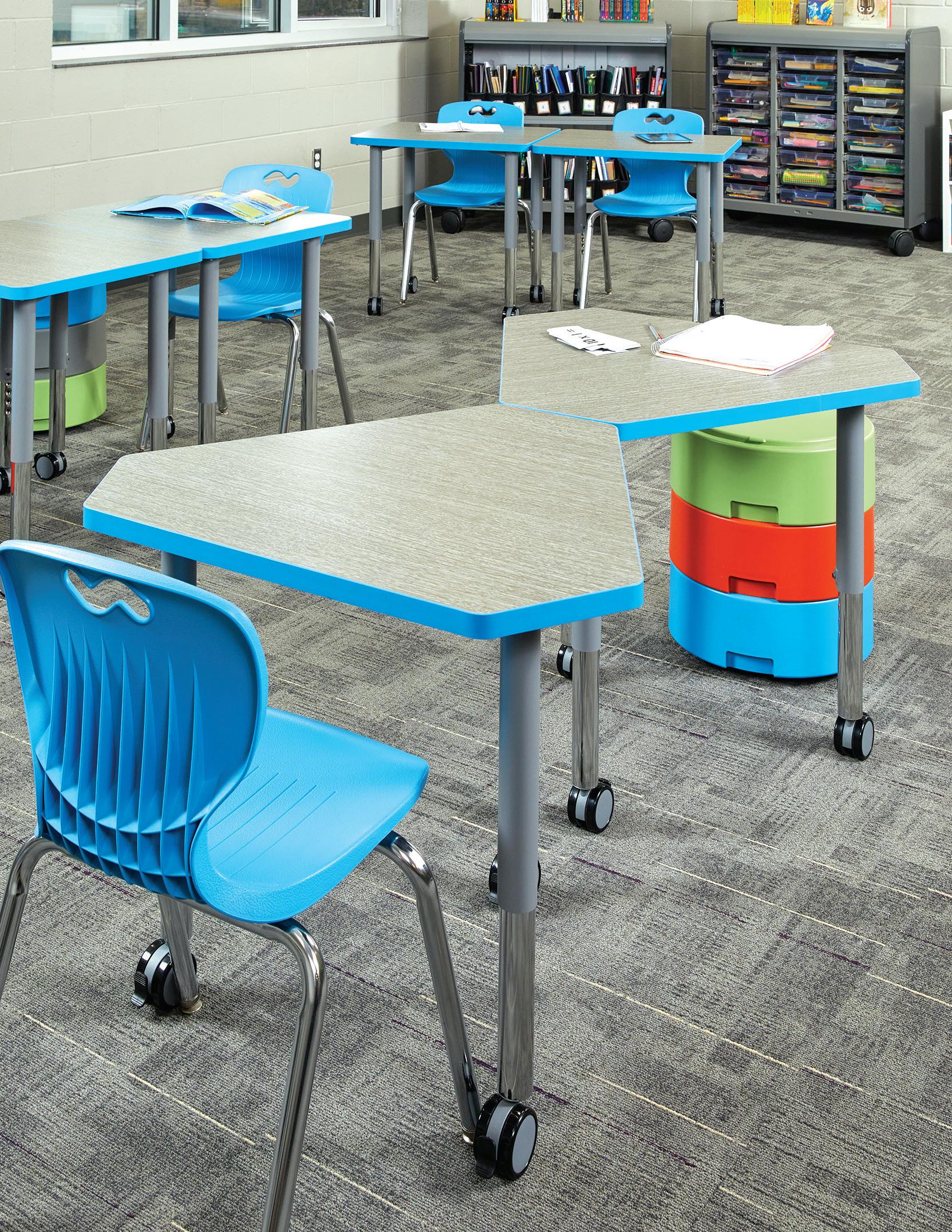 Designed to conquer classroom gridlock, these lightweight, height-adjustable desks work together to create unique groupings that suit your space and style.
