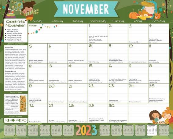 Dates for more than 100 author and illustrator birthdays, along with national and religious holidays