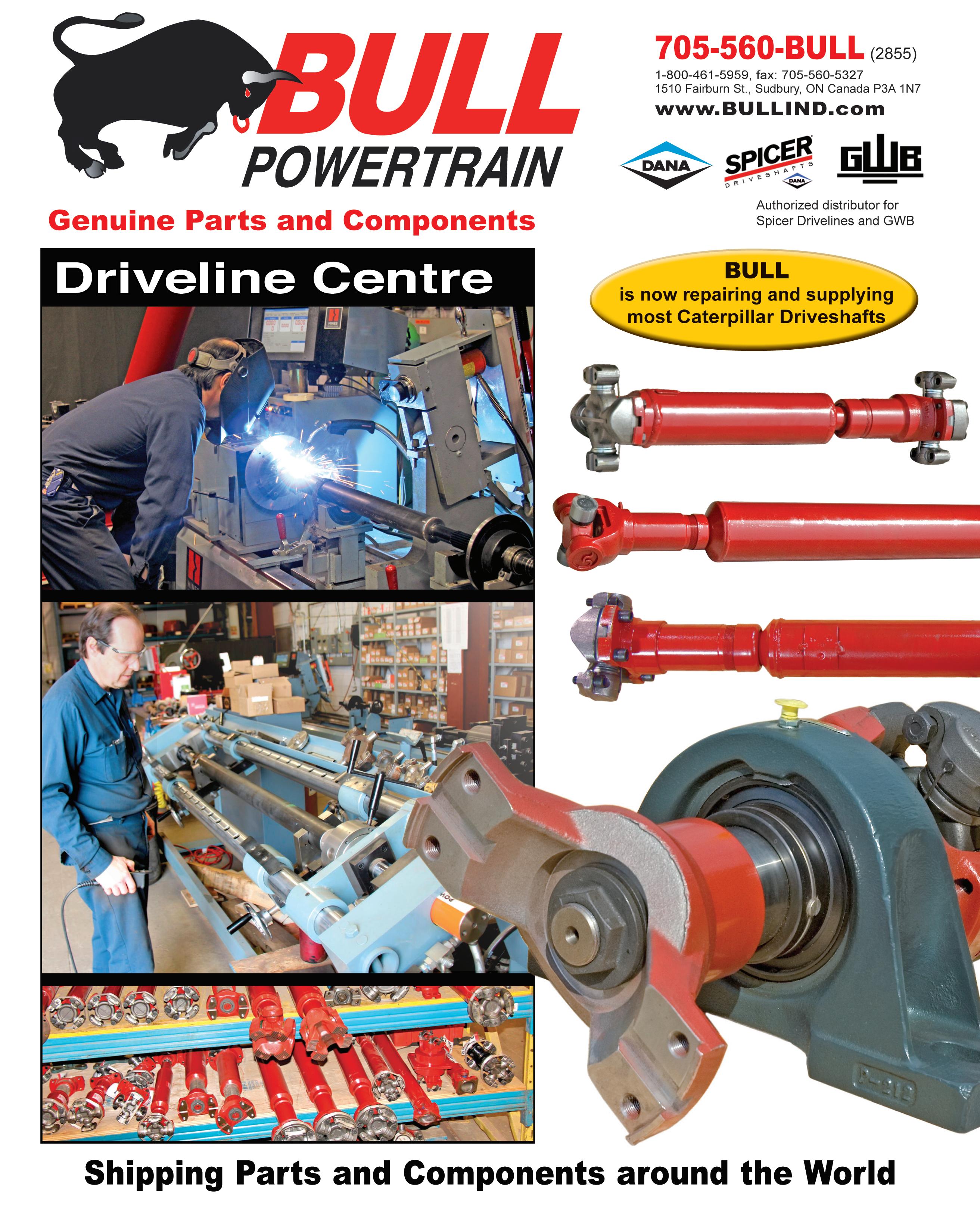 Off-Highway Service Center Authorized Factory trained technicians Large inventory of OEM parts and components for all your off-highway equipment Authorized to perform warranty work All components are thoroughly tested and certified, to assure quality and performance that meet or exceed OEM standards. 705-560-2855 bullpowertrain.com sales@bullind.com Authorized distributor for: GENUINE OEM PARTS Authorized Authorized “ Bull is currently seeking experienced component rebuilders. Please contact us for more information.”