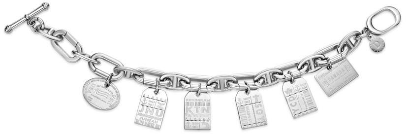 Charm bracelet (engraved luggage tags & visa stamps)