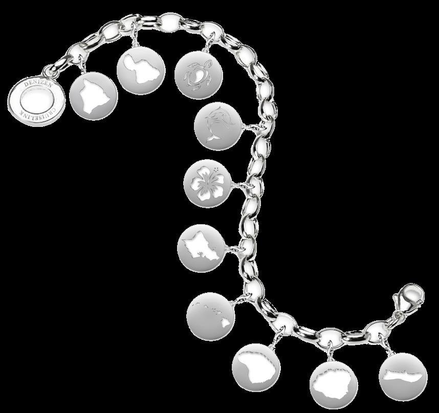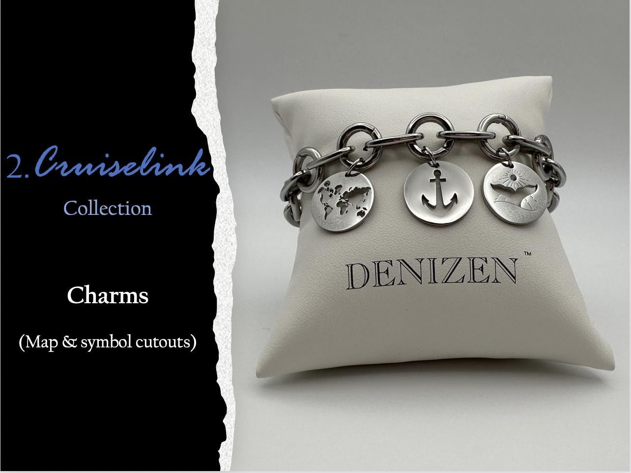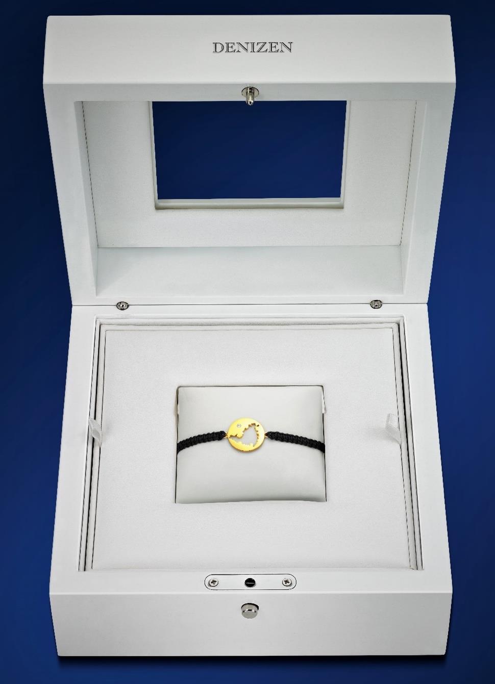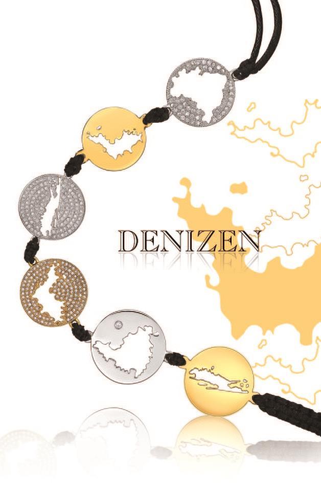 • From its classic ‘Pure’ design of a map cutout made of Sterling Silver, DENIZEN expanded into distinctive collections of bracelets and pendants also crafted in 14kt & 18kt Gold with designs including symbols & coordinates.