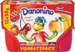 Danone Danonino Fruchtquark assortiert: Erdbeere, Banane, Himbeere, Aprikose, Kirsche, 12 x 50 g