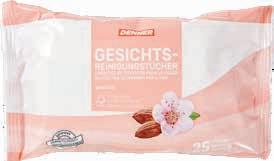 Lingettes nettoyantes sensitive Denner à l’huile d’amande, 25 lingettes