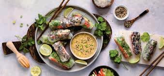 Rouleaux de printemps vietnamiens avec surimi et sauce aux cacahuètes et au citron vert
